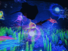 3Dプロジェクションマッピング「アクアリウム・ファンタジー」に行ってきました。 大水槽で生命の誕生をテーマに映し出されるプロジェクションマッピングです。 水槽にいるお魚たちと、とてもよかったよ。 |