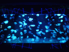 SF映画のような空間のプロジェクションマッピングです。 エレクトリカルな音楽とクラゲの組み合わせがかっこいい! |
