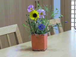 9月22日フラワーセラピー テーマは『癒しとくつろぎに活力をプラス』 ヒマワリとコスモスで作りました。綺麗にでき満足! |