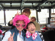 船内だけでも桜をたのしもうと、皆で桜色に変身しました!!