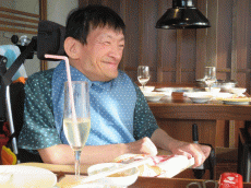 夕食は炭火焼きです。まずは、シャンパンで乾杯!